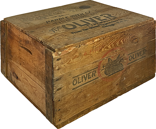 Oliver typewriters were shipped in crates adorned with images and writing advertising the machines they carried.
