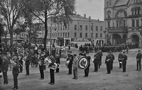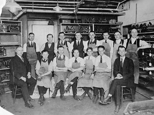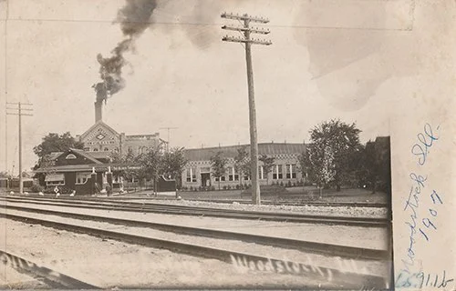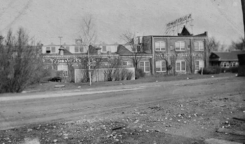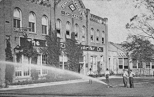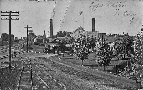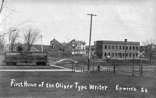 The original Oliver office at 961 Main St., Dubuque, Iowa (the brick building on the right side with the side chimney)