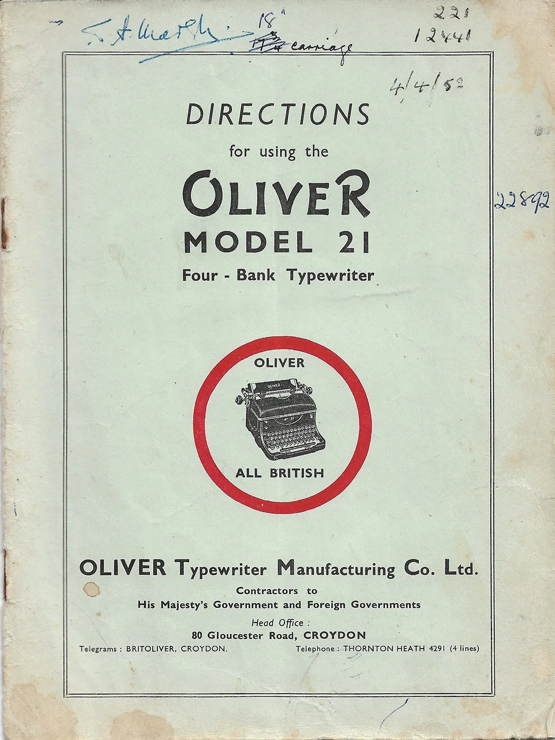Have any Oliver ephemera or accessories for sale? Please reach me at contact@olivertypewriters.com.