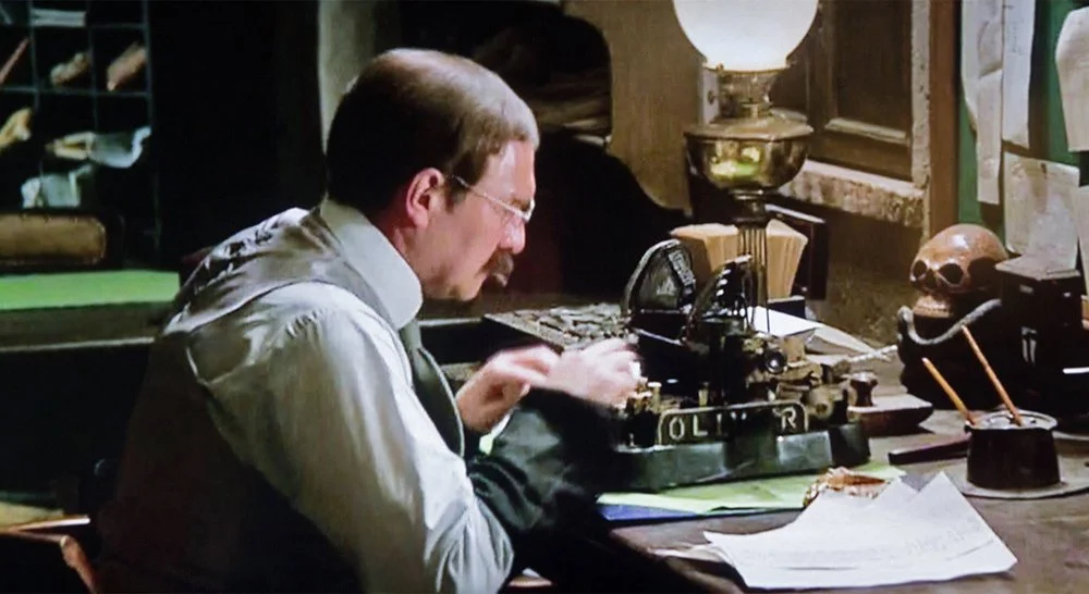 Based on the classic novel Dracula by Bram Stoker, this film tells the story of Count Dracula (Gary Oldman), a centuries-old vampire who travels to England to seduce Mina Murray (Winona Ryder), the fiancée of his barrister. Winona Ryder is seen using an Oliver No. 3 typewriter in scenes where she writes to her fiancé and documents unfolding events. These events take place in 1897, four years before the introduction of the Oliver No. 3, so the use of this model is not historically accurate.